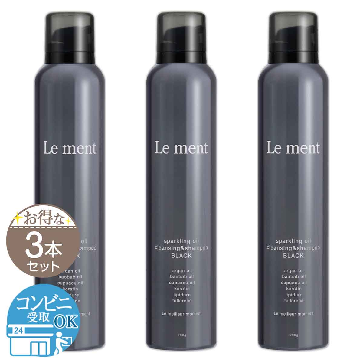 【 3本セット 】 ルメント Le ment 高濃度炭酸オイルクレンジング&シャンプー ブラック 200g 配送料無料NYH / ルメント黒シャンプーF04-L9 / LMTSCB-03P