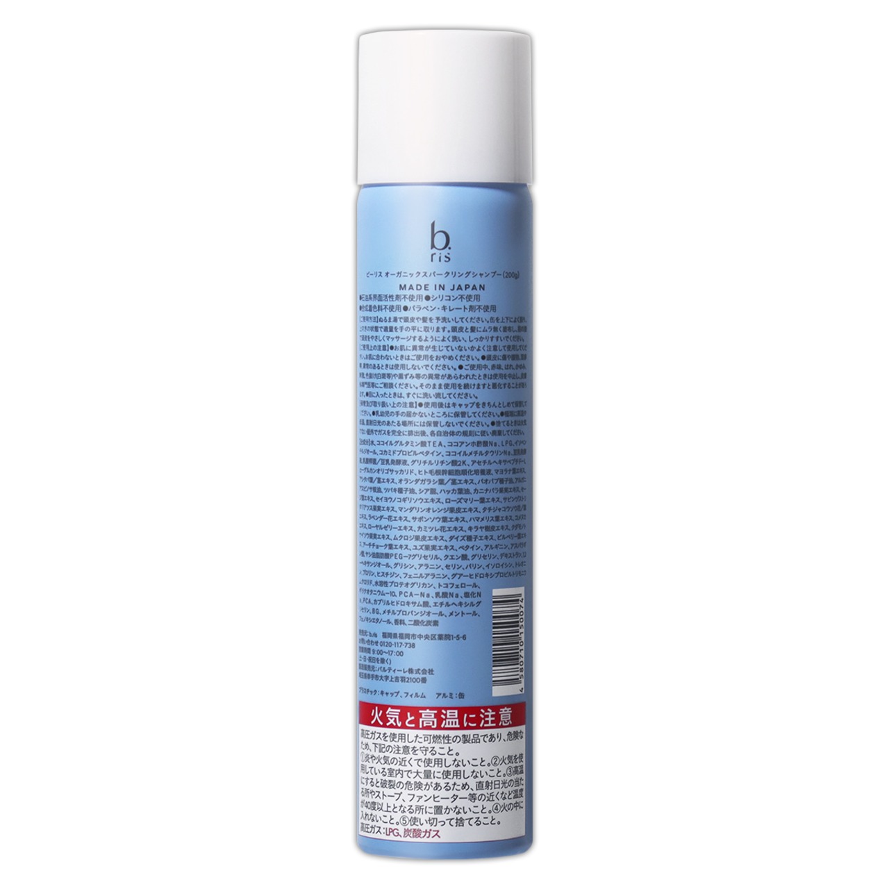 水、ココイルグルタミン酸TEA、ココアンホ酢酸Na、LPG、イソペンチルジオール、コカミドプロピルベタイン、ココイルメチルタウリンNa、豆乳発酵液、乳酸桿菌/豆乳発酵液、グリチルリチン酸2K、アセチルヘキサペプチド-1、α-グルカンオリゴサッカリド、ヒト毛根幹細胞順化培養液、マヨラナ葉エキス、アシタバ葉/茎エキス、オランダガラシ葉/茎エキス、バオバブ種子油、アルガニアスピノサ核油、ツバキ種子油、シア脂、ハッカ葉油、カニナバラ果実エキス、セージ葉エキス、セイヨウノコギリソウエキス、ローズマリー葉エキス、サピンヅストリホリアツス果実エキス、マンダリンオレンジ果皮エキス、タチジャコウソウ花/葉エキス、ラベンダー花エキス、サボンソウ葉エキス、ハマメリス葉エキス、コメヌカエキス、ローヤルゼリーエキス、カミツレ花エキス、キラヤ樹皮エキス、クダモノトケイソウ果実エキス、ムクロジ果皮エキス、ダイズ種子エキス、ビルベリー葉エキス、アーチチョーク葉エキス、ユズ果実エキス、ベタイン、アルギニン、アスパラギン酸、ヤシ油脂肪酸PEG-7グリセリル、クエン酸、グリセリン、デキストラン、1,2-ヘキサンジオール、グリシン、アラニン、セリン、バリン、イソロイシン、トレオニン、プロリン、ヒスチジン、フェニルアラニン、グアーヒドロキシプロピルトリモニウムクロリド、水溶性プロテオグリカン、トコフェロール、ポリクオタニウム-10、PCA-Na、乳酸Na、塩化Na、PCA、カプリルヒドロキサム酸、エチルヘキシルグリセリン、BG、メチルプロパンジオール、メントール、フェノキシエタノール、香料、二酸化炭素