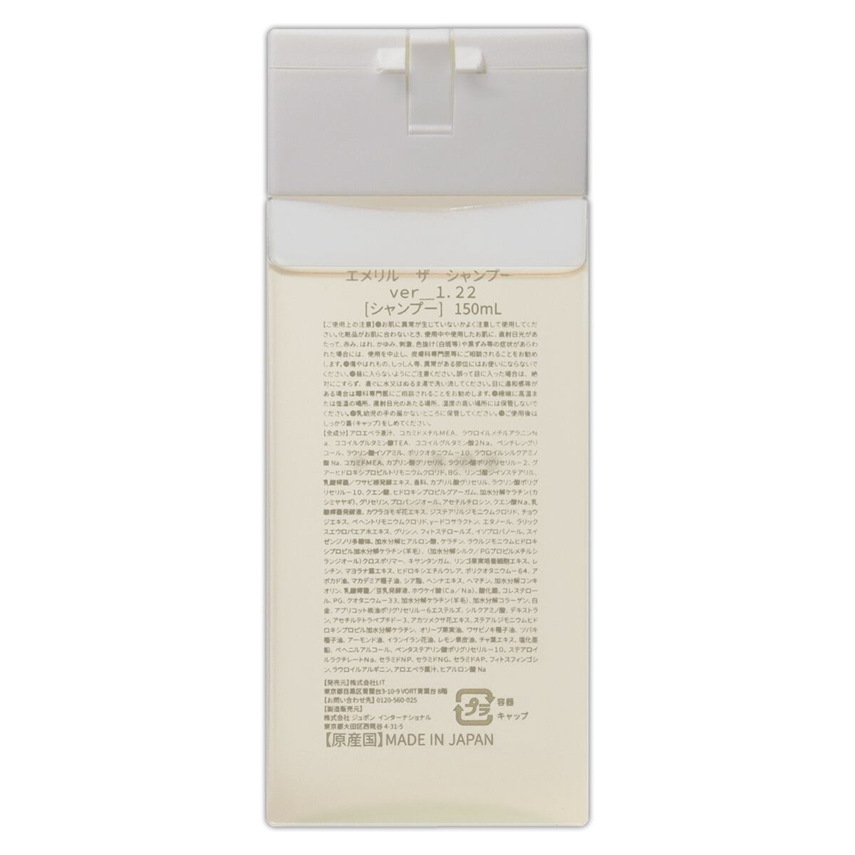 <シャンプー>アロエベラ液汁、コカミドメチルMEA、ラウロイルメチルアラニンNa、ココイルグルタミン酸TEA、ココイルグルタミン酸2Na、ペンチレングリコール、ラウリン酸イソアミル、ポリクオタニウム-10、ラウロイルシルクアミノ酸Na、コカミドMEA、カプリン酸グリセリル、ラウリン酸ポリグリセリル-2、グアーヒドロキシプロピルトリモニウムクロリド、BG、リンゴ酸ジイソステアリル、乳酸桿菌/ワサビ根発酵エキス、香料、カプリル酸グリセリル、ラウリン酸ポリグリセリル-10、クエン酸、ヒドロキシプロピルグアーガム、加水分解ケラチン(カシミヤヤギ)、グリセリン、プロパンジオール、アセチルチロシン、クエン酸Na、乳・酸桿菌発酵液、カワラヨモギ花エキス、ジステアリルジモニウムクロリド、チョウジエキス、ベヘントリモニウムクロリド、ソードコサラクトン、エタノール、ラリックスエウロパエア木エキス、グリシン、フィトステロールズ、イソプロパノール、スイゼンジノリ多糖体、加水分解ヒアルロン酸、ケラチン、ラウルジモニウムヒドロキシプロピル加水分解ケラチン(羊毛)、(加水分解シルク/PGプロピルメチルシランジオール)クロスポリマー、キサンタンガム、リンゴ果実培養細胞エキス、レシチン、マヨラナ葉エキス、ヒドロキシエチルウレア、ポリクオタニウム-64、アボカド油、マカデミア種子油、シア脂、ヘシナエキス、ヘマチン、加水分解コンキオリン、乳酸桿菌/豆乳発酵液、ホウケイ酸(Ca/Na)、酸化銀、コレステロール、PG、クオタニウム-33、加水分解ケラチン(羊毛)、加水分解コラーゲン、白金、アプリコット核油ポリグリセリル-6エステルズ、シルクアミノ酸、デキストラン、アセチルテトラペプチド-3、アカツメクサ花エキス、ステアルジモニウムヒドロキシプロピル加水分解ケラチン、オリーブ果実油、ワサビノキ種子油、ツバキ種子油、アーモンド油、イランイラン花油、レモン果皮油、チャ葉エキス、塩化亜鉛、ベヘニルアルコール、ペンタステアリン酸ポリグリセリル-10、ステアロイルラクチレートNa、セラミドNP、セラミドNG、セラミドAP、フィトスフィンゴシン、ラウロイルアルギニン、アロエベラ葉汁、ヒアルロン酸Na